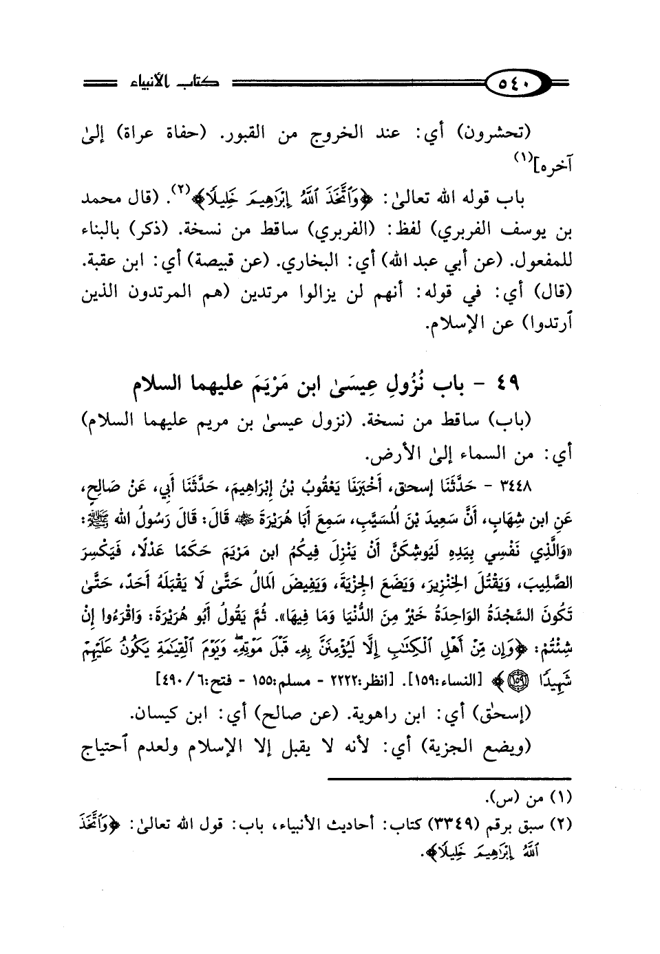 49 - باب نُزُولِ عِيسَى بن مَرْيَمَ عليهما السلام
