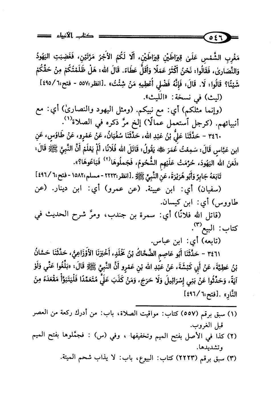 3460 - حَدَّثَنَا عَلِيُّ بْنُ عَبْدِ اللَّهِ، حَدَّثَنَا سُفْيَانُ، عَنْ عَمْرٍو، عَنْ طَاوُسٍ، عَنِ ابْنِ عَبَّاسٍ، قَال: سَمِعْتُ عُمَرَ رَضِيَ اللَّهُ عَنْهُ، يَقُولُ: قَاتَلَ اللَّهُ فُلانًا، أَلَمْ يَعْلَمْ أَنَّ النَّبِيَّ صَلَّى اللهُ عَلَيْهِ وَسَلَّمَ، قَال: "لَعَنَ اللَّهُ اليَهُودَ، حُرِّمَتْ عَلَيْهِمُ الشُّحُومُ فَجَمَّلُوهَا (¬2) فَبَاعُوهَا؟ ".
