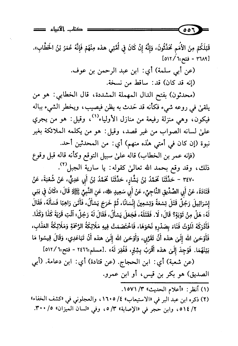 3470 - حَدَّثَنَا مُحَمَّدُ بْنُ بَشَّارٍ، حَدَّثَنَا مُحَمَّدُ بْنُ أَبِي عَدِيٍّ، عَنْ شُعْبَةَ، عَنْ قَتَادَةَ، عَنْ أَبِي الصِّدِّيقِ النَّاجِيِّ، عَنْ أَبِي سَعِيدٍ الخُدْرِيِّ رَضِيَ اللَّهُ عَنْهُ، عَنِ النَّبِيِّ صَلَّى اللهُ عَلَيْهِ وَسَلَّمَ، قَال: "كَانَ فِي بَنِي إِسْرَائِيلَ رَجُلٌ قَتَلَ تِسْعَةً وَتِسْعِينَ إِنْسَانًا، ثُمَّ خَرَجَ يَسْأَلُ، فَأَتَى رَاهِبًا فَسَأَلَهُ فَقَال لَهُ: هَلْ مِنْ تَوْبَةٍ؟ قَال: لَا، فَقَتَلَهُ، فَجَعَلَ يَسْأَلُ، فَقَال لَهُ رَجُلٌ: ائْتِ قَرْيَةَ كَذَا وَكَذَا، فَأَدْرَكَهُ المَوْتُ، فَنَاءَ بِصَدْرِهِ نَحْوَهَا، فَاخْتَصَمَتْ فِيهِ مَلائِكَةُ الرَّحْمَةِ وَمَلائِكَةُ العَذَابِ، فَأَوْحَى اللَّهُ إِلَى هَذِهِ أَنْ تَقَرَّبِي، وَأَوْحَى اللَّهُ إِلَى هَذِهِ أَنْ تَبَاعَدِي، وَقَال: قِيسُوا مَا بَيْنَهُمَا، فَوُجِدَ إِلَى هَذِهِ أَقْرَبَ بِشِبْرٍ، فَغُفِرَ لَهُ".