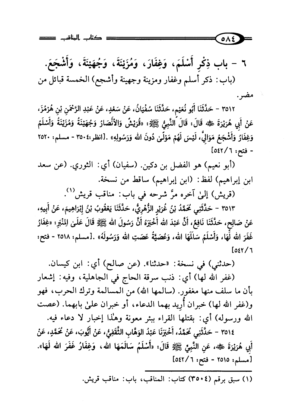 3514 - حَدَّثَنِي مُحَمَّدٌ، أَخْبَرَنَا عَبْدُ الوَهَّابِ الثَّقَفِيُّ، عَنْ أَيُّوبَ، عَنْ مُحَمَّدٍ، عَنْ أَبِي هُرَيْرَةَ رَضِيَ اللَّهُ عَنْهُ، عَنِ النَّبِيِّ صَلَّى اللهُ عَلَيْهِ وَسَلَّمَ، قَال: "أَسْلَمُ سَالمَهَا اللَّهُ، وَغِفَارُ غَفَرَ اللَّهُ لَهَا".