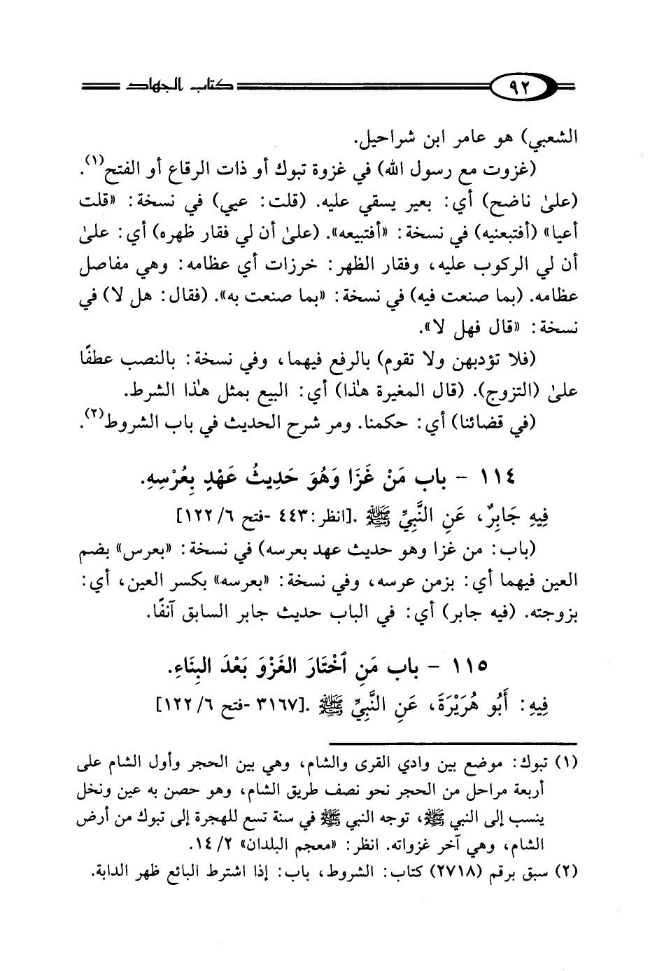 114 - بَابُ مَنْ غَزَا وَهُوَ حَدِيثُ عَهْدٍ بِعُرْسِهِ