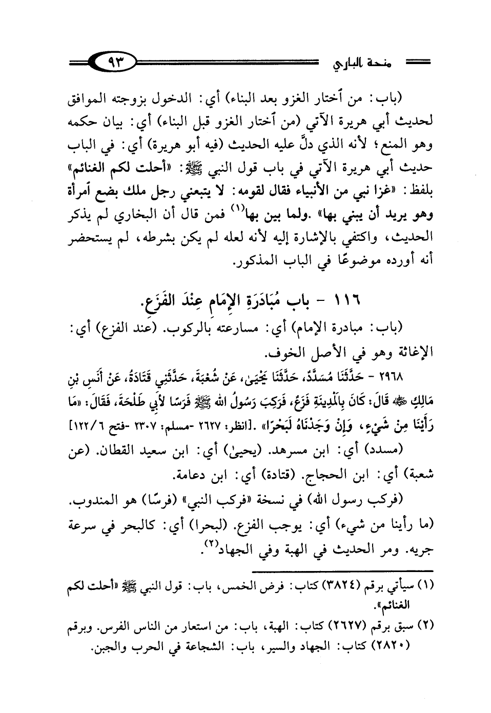 (¬2) سبق برقم (2627) كتاب: الهبة، باب: من استعار من الناس الفرس. وبرقم (2820) كتاب: الجهاد والسير، باب: الشجاعة في الحرب والجبن.
