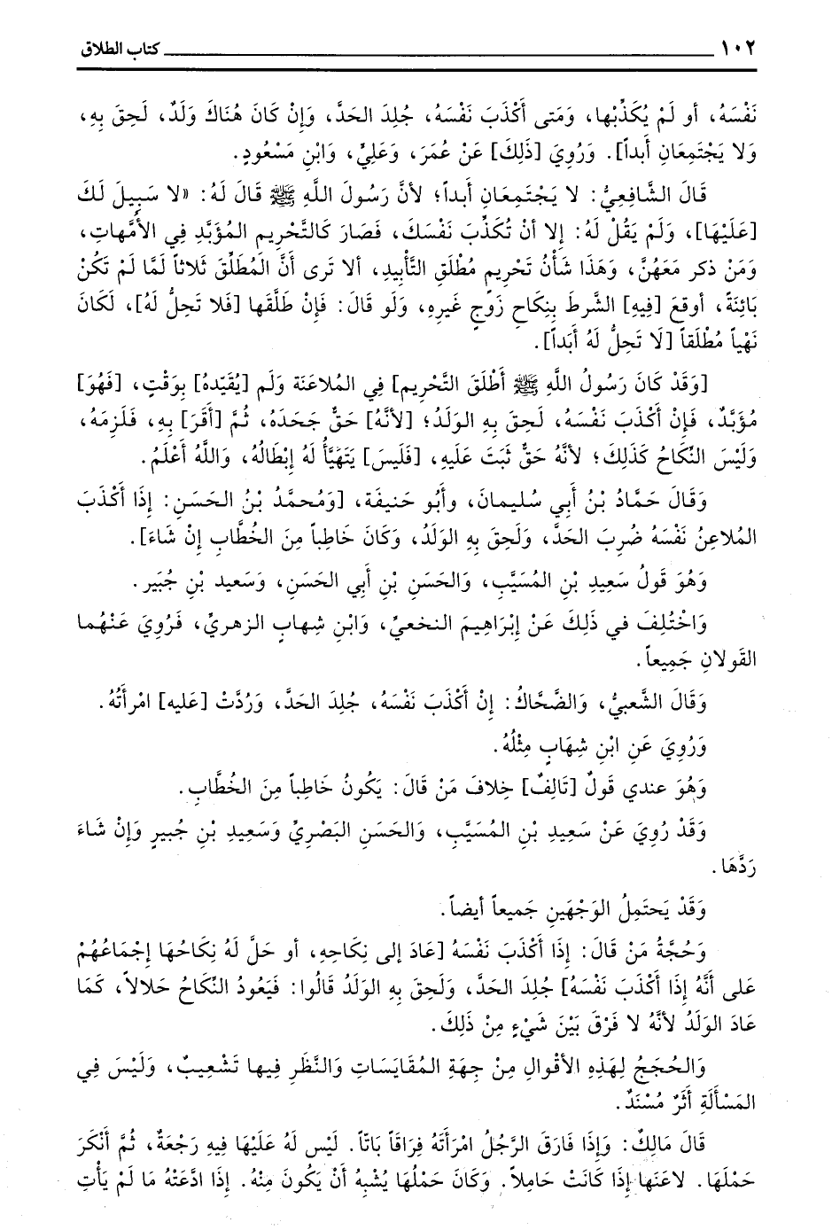 وَاتَّفَقَ مَالِكٌ وَالشَّافِعِيُّ وَأَبُو حَنِيفَةَ وَأَصْحَابُهُمْ وَالثَّوْرِيُّ وَالْأَوْزَاعِيُّ وَاللَّيْثُ وَأَحْمَدُ وَإِسْحَاقُ وَأَبُو ثَوْرٍ وَأَبُو عُبَيْدٍ وَهُوَ مَذْهَبُ أَهْلِ الْمَدِينَةِ وَمَكَّةَ وَالْكُوفَةِ وَالشَّامِ وَمِصْرَ أَنَّ اللِّعَانَ لَا يَفْتَقِرُ إِلَى طَلَاقٍ وَأَنَّ حُكْمَهُ وَسُنَّتَهُ الْفُرْقَةُ بَيْنَ الْمُتَلَاعِنَيْنِ إِمَّا بِاللِّعَانِ وَإِمَّا بِتَفْرِيقِ الْحَاكِمِ عَلَى مَا ذَكَرْنَا مِنْ مَذَاهِبِهِمْ