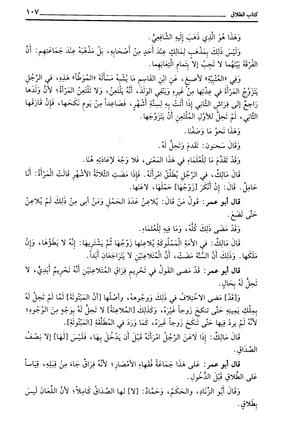 قال بن الْقَاسِمِ وَإِنَّمَا يُلَاعِنُ الْمُسْلِمُ الْكَافِرَةَ فِي دَفْعِ الْحَمْلِ وَلَا يُلَاعِنُهَا فِيمَا سِوَى ذَلِكَ