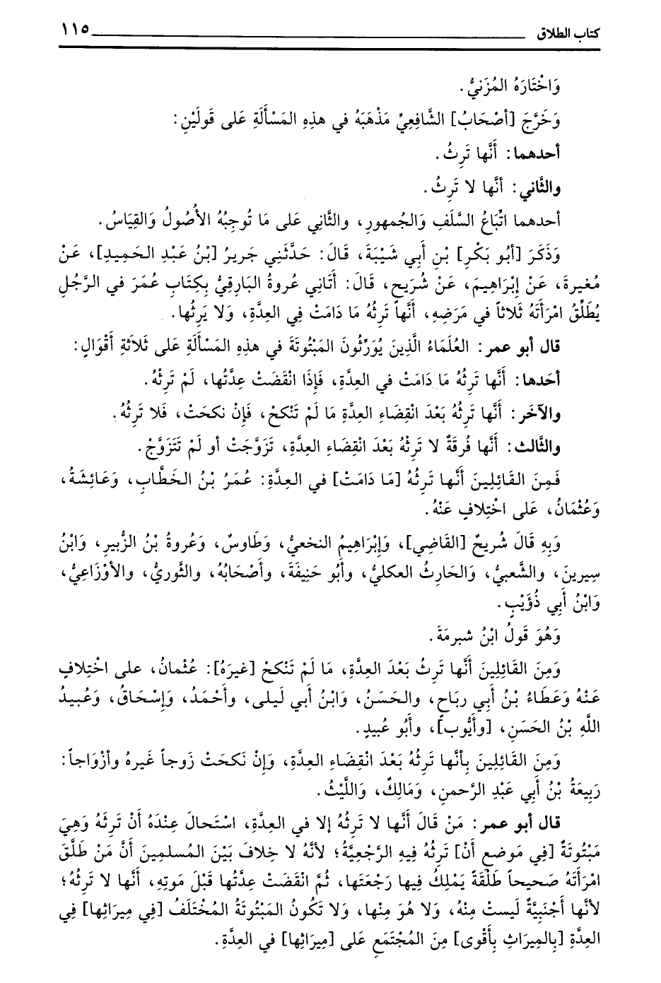 وَجُمْهُورُ عُلَمَاءِ الْمُسْلِمِينَ عَلَى مَا رُوِيَ عَنِ الصَّحَابَةِ فِي ذَلِكَ إِلَّا طَائِفَةً مِنْ أَهْلِ الفقه والنظر فإنهم قالوا بقول بن الزُّبَيْرِ عَلَى ظَاهِرِ الْقُرْآنِ فِي تَوْرِيثِ الزَّوْجَاتِ وَلَيْسَ الْمَبْتُوتَةُ بِزَوْجَةٍ عِنْدَ جَمَاعَةِ الْمُسْلِمِينَ وَلَا يَرِثُهَا عِنْدَ أَحَدٍ مِنْهُمْ إِنْ مَاتَتْ قَالُوا وَكَذَلِكَ لَا تَرِثُهُمْ وَلَوْ كَانَتْ زَوْجَةً لَوَرِثَهَا كَمَا تَرِثُهُ