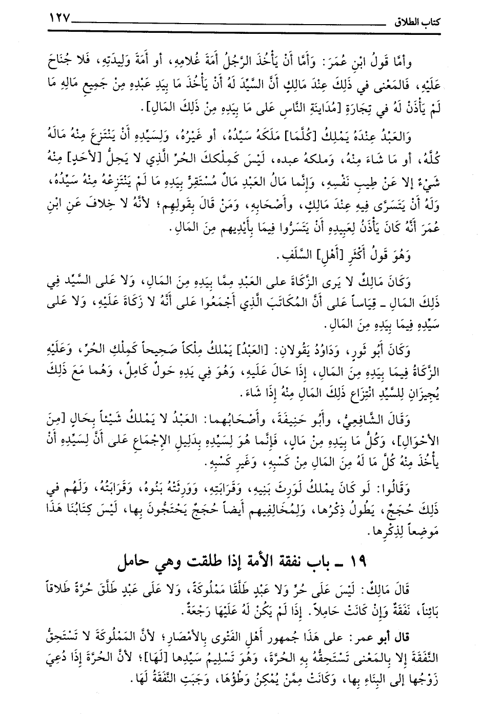 وَلَمْ يَخْتَلِفْ فِي ذَلِكَ أَئِمَّةُ الْأَمْصَارِ كُلُّهُمْ يَقُولُ الطَّلَاقُ بِيَدِ الْعَبْدِ لَا بِيَدِ السَّيِّدِ وَكُلُّهُمْ لَا يُجِيزُ النِّكَاحَ لِلْعَبْدِ إِلَّا بِإِذْنِ سَيِّدِهِ