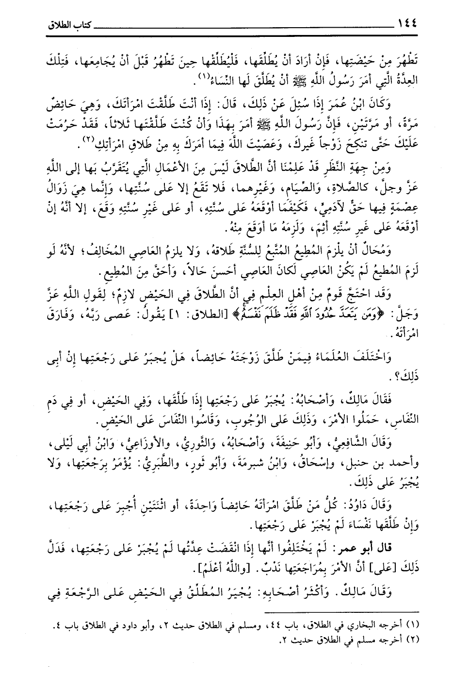 وَفِي أَمْرِ رَسُولِ اللَّهِ صَلَّى اللَّهُ عَلَيْهِ وَسَلَّمَ عَبْدَ اللَّهِ بْنَ عُمَرَ بِمُرَاجَعَةِ امْرَأَتِهِ الَّتِي طَلَّقَهَا حَائِضًا دَلِيلٌ يُبَيِّنُ عَلَى أَنَّ الطَّلَاقَ فِي الْحَيْضِ وَاقِعٌ لَازِمٌ لِأَنَّ الْمُرَاجَعَةَ لَا تَكُونُ إِلَّا بَعْدَ صِحَّةِ الطَّلَاقِ وَلُزُومِهِ وَلَوْ لَمْ يَكُنِ الطَّلَاقُ وَاقِعًا لَازِمًا مَا قَالَ مُرْهُ فَلْيُرَاجِعْهَا لِأَنَّ مَنْ لَمْ يُطَلِّقْ لَا يُقَالُ لَهُ رَاجِعْ لِأَنَّهُ مُحَالٌ أَنْ يُقَالَ لِرَجُلٍ امْرَأَتُهُ فِي عِصْمَتِهِ لَمْ يُفَارِقْهَا رَاجِعْهَا بَلْ كَانَ يُقَالُ لَهُ طَلَاقُكَ لَمْ يَصْنَعْ شَيْئًا وَامْرَأَتُكَ بَعْدَهُ كَمَا كَانَتْ قَبْلَهُ وَنَحْوُ هَذَا