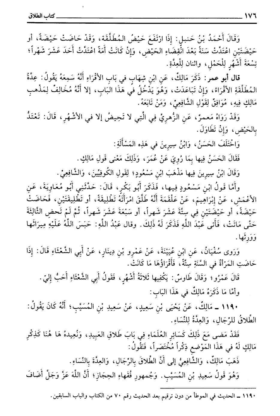 1189 - مَالِكٌ عَنْ يَحْيَى بْنِ سَعِيدٍ وَعَنْ يَزِيدَ بْنِ عَبْدِ اللَّهِ بْنِ قُسَيْطٍ اللَّيْثِيِّ عَنْ سَعِيدِ بْنِ الْمُسَيِّبِ أَنَّهُ قَالَ قَالَ عُمَرُ بْنُ الْخَطَّابِ أَيُّمَا امْرَأَةٍ طُلِّقَتْ فَحَاضَتْ حَيْضَةً أَوْ حَيْضَتَيْنِ ثُمَّ رَفَعَتْهَا حَيْضَتُهَا فَإِنَّهَا تَنْتَظِرُ تِسْعَةَ أَشْهُرٍ فَإِنْ بان بها حَمْلٌ فَذَلِكَ وَإِلَّا اعْتَدَّتْ بَعْدَ التِّسْعَةِ الْأَشْهُرِ ثَلَاثَةَ أَشْهُرٍ ثُمَّ حَلَّتْ