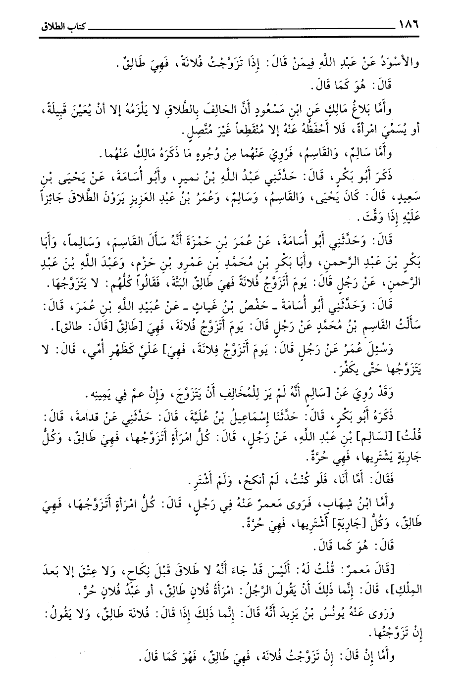 وَجَعَلَهُ مَالِكٌ وَمَنْ تَابَعَهُ فِي بَابِ طَلَاقِ السُّلْطَانِ عَلَى الْمَوْلَى وَالْعِنِّينِ