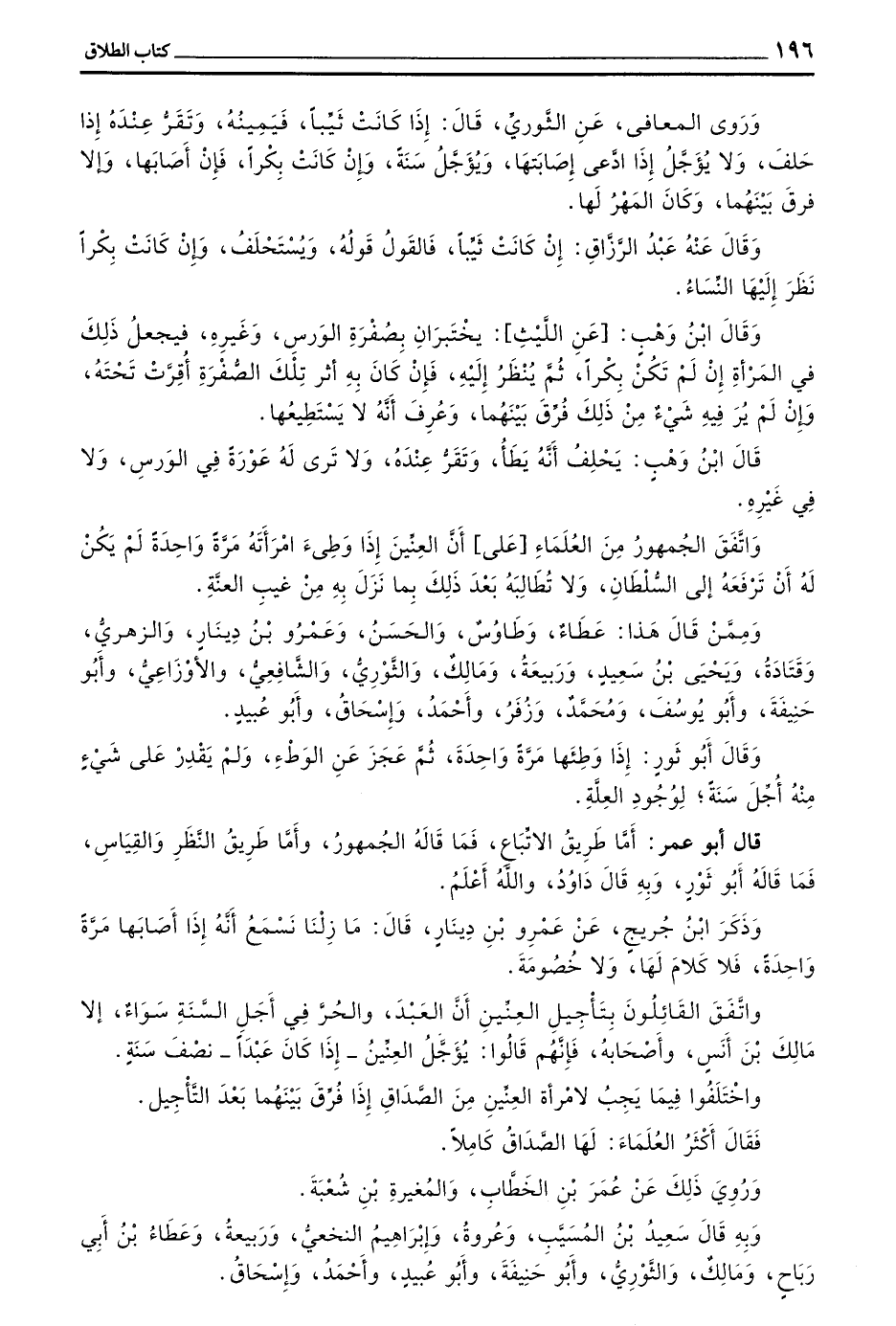قَالَ أَبُو عُمَرَ عَلَى هَذَا جَمَاعَةٌ التَّابِعِينَ بِالْحِجَازِ وَالْعِرَاقِ أَنَّ الْعِنِّينَ يُؤَجَّلُ سَنَةً مِنْ يَوْمِ يُرْفَعُ إِلَى السُّلْطَانِ وَقَدْ رُوِيَ عَنْ بَعْضِهِمْ بِأَنَّهُ أَجَّلَهُ عَشْرَةَ أَشْهُرٍ وَلَيْسَ بِشَيْءٍ