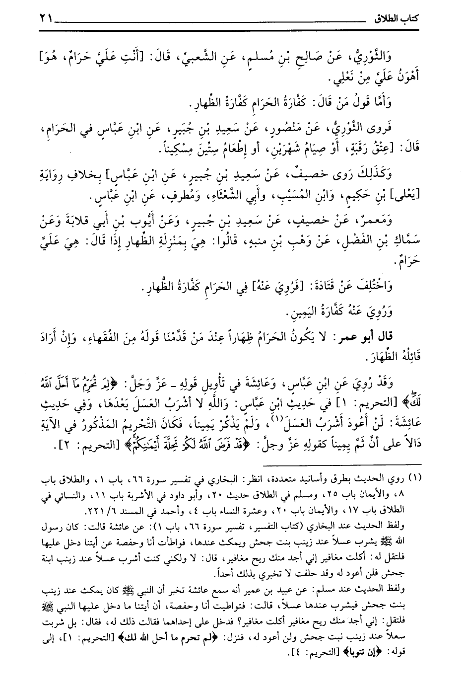 فَرَوَى الثَّوْرِيُّ عَنْ مَنْصُورٍ عَنْ سَعِيدِ بْنِ جُبَيْرٍ عَنِ بن عَبَّاسٍ فِي الْحَرَامِ قَالَ عِتْقُ رَقَبَةٍ أَوْ صِيَامُ شَهْرَيْنِ أَوْ إِطْعَامُ سِتِّينَ مِسْكِينًا