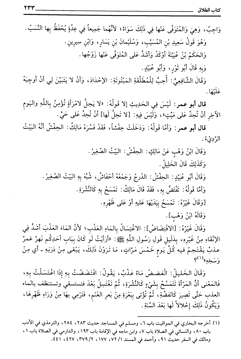 فَالْعِدَّةُ وَاجِبَةٌ فِي الْقُرْآنِ وَالْإِحْدَادُ وَاجِبٌ بِالسُّنَّةِ المجتمع عليها