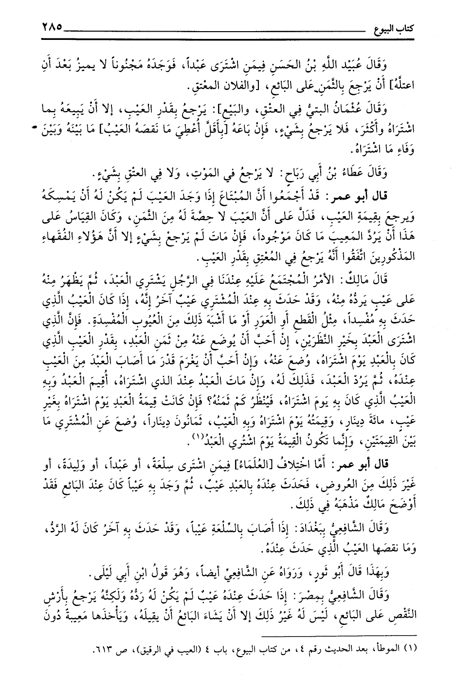 قَالَ أَبُو عُمَرَ رُوِيَ عَنْ زَيْدِ بْنِ ثَابِتٍ أَنَّهُ كَانَ يَرَى الْبَرَاءَةَ مِنْ كُلِّ عَيْبٍ جَائِزَةً