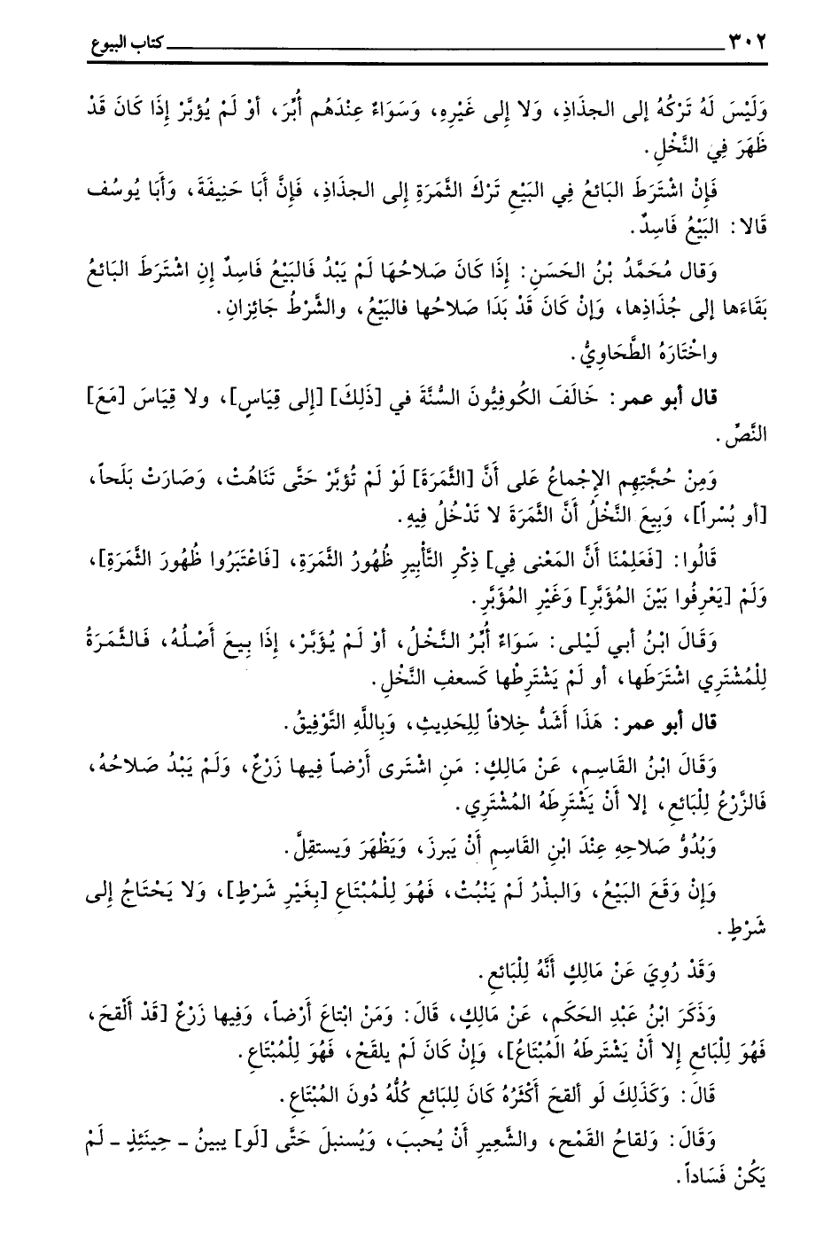 وَأَمَّا مَعْنَى الْأَبَارِ فِي سَائِرِ ثِمَارِ الْأَشْجَارِ فَابْنُ الْقَاسِمِ يُرَاعِي ظُهُورَ الثَّمَرَةِ لَا غَيْرَ وَمَعْنَاهُ انْعِقَادُ الثَّمَرَةِ وَثُبُوتُهَا
