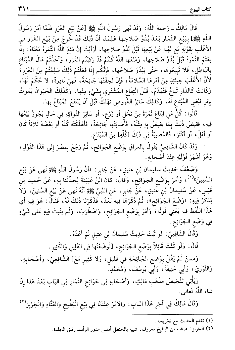 وَعِنْدَ مَالِكٍ وَالشَّافِعِيِّ وَأَصْحَابِهِمَا وَاللَّيْثِ مَنِ اشْتَرَى الثَّمَرَةَ بَعْدَ بُدُوِّ