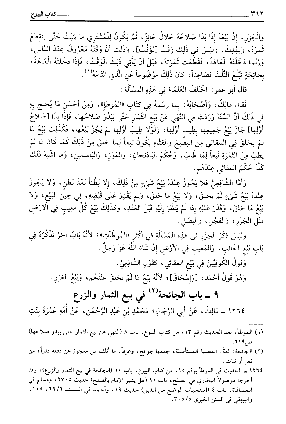 قَالَ أَبُو عُمَرَ قَوْلُ مَالِكٍ صَحِيحٌ عَلَى مَا ذَكَرْنَا فِي أَوَّلِ هَذَا الْبَابِ مِنْ ذَهَابِ الْعَاهَةِ بِأَوَّلِ طُلُوعِ الثُّرَيَّا عَلَى مَا فِي حَدِيثِ زَيْدِ بْنِ ثَابِتٍ وَلَيْسَ فِيهِ أَنَّهُ أَزْهَى حَائِطُهُ