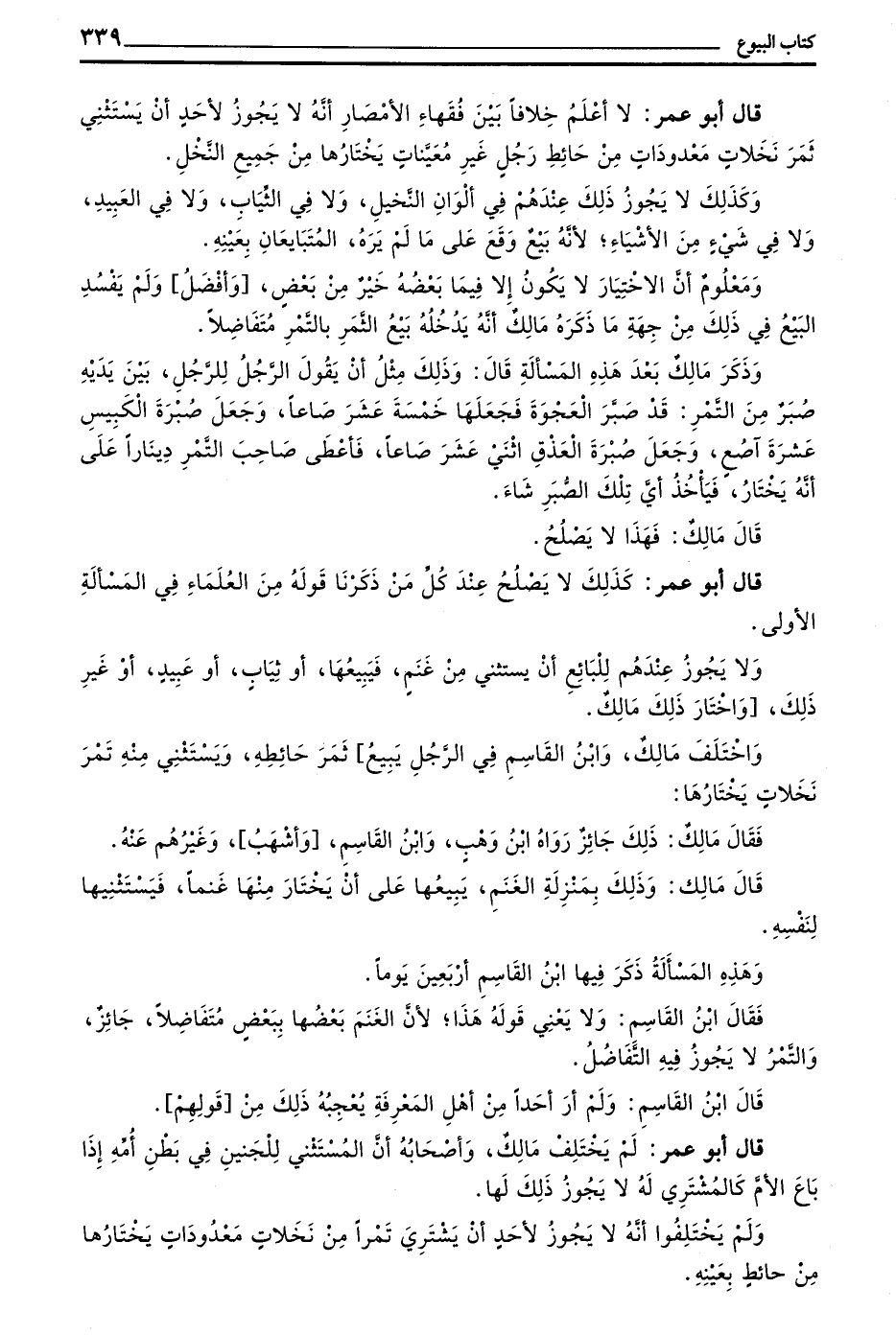 الْبُيُوعِ إِلَّا أَنْ يَكُونَ الْمُبْتَاعُ يَنْظُرُ الشَّيْءِ الْمَبِيعِ وَيَتَأَمَّلُهُ وَيُحِيطُ بِهِ نَظَرُهُ وَيَعْلَمُ مَا تَقَعُ عَلَيْهِ صِفَتُهُ بِعَيْنِهِ