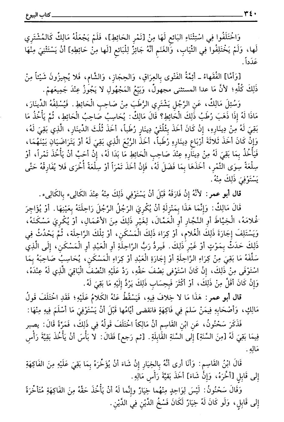 وَسُئِلَ مَالِكٌ عَنِ الرَّجُلِ يَشْتَرِي مِنَ الرَّجُلِ الْحَائِطَ فِيهِ أَلْوَانٌ مِنَ النَّخْلِ مِنَ الْعَجْوَةِ وَالْكَبِيسِ وَالْعَذْقِ وَغَيْرِ ذَلِكَ مِنْ أَلْوَانِ التَّمْرِ فَيَسْتَثْنِي مِنْهَا ثَمَرَ النَّخْلَةِ أَوِ النَّخَلَاتِ يَخْتَارُهَا مِنْ نَخْلِهِ فَقَالَ مَالِكٌ ذَلِكَ لَا يَصْلُحُ لِأَنَّهُ إِذَا صَنَعَ ذَلِكَ تَرَكَ ثَمَرَ النَّخْلَةِ مِنَ الْعَجْوَةِ وَمَكِيلَةُ ثَمَرِهَا خَمْسَةَ عَشَرَ صَاعًا وَأَخَذَ مَكَانَهَا ثَمَرَ نَخْلَةٍ مِنَ الْكَبِيسِ وَمَكِيلَةُ ثَمَرِهَا عَشْرَةُ أَصْوُعٍ فَإِنَّ أَخْذَ الْعَجْوَةَ الَّتِي فِيهَا خَمْسَةَ عَشَرَ صَاعًا وَتَرَكَ الَّتِي فِيهَا عَشْرَةُ أَصْوُعٍ مِنَ الْكَبِيسِ فَكَأَنَّهُ اشْتَرَى الْعَجْوَةَ بِالْكَبِيسِ مُتَفَاضِلًا