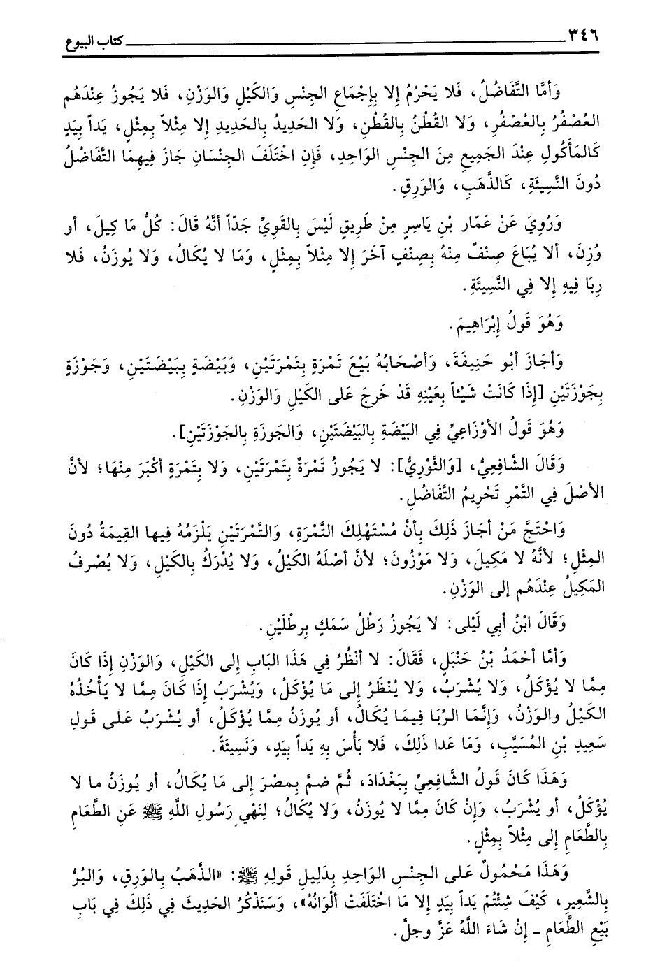 وَأَمَّا مَا لَا يَيْبَسُ وَلَا يُدَّخَرُ مِثْلَ التُّفَّاحِ وَالْإِجَّاصِ وَالْكُمِّثْرَى وَالرُّمَّانِ وَالْخَوْخِ وَالْمَوْزِ وَالْبِطِّيخِ وَمَا أَشْبَهَ ذَلِكَ مِمَّا قَدِ اخْتَلَفَتْ أَسْمَاؤُهُ فَلَا بَأْسَ بِالتَّفَاضُلِ فِيهِ يَدًا بِيَدٍ جِنْسًا وَاحِدًا كَانَ أَوْ جِنْسَيْنِ