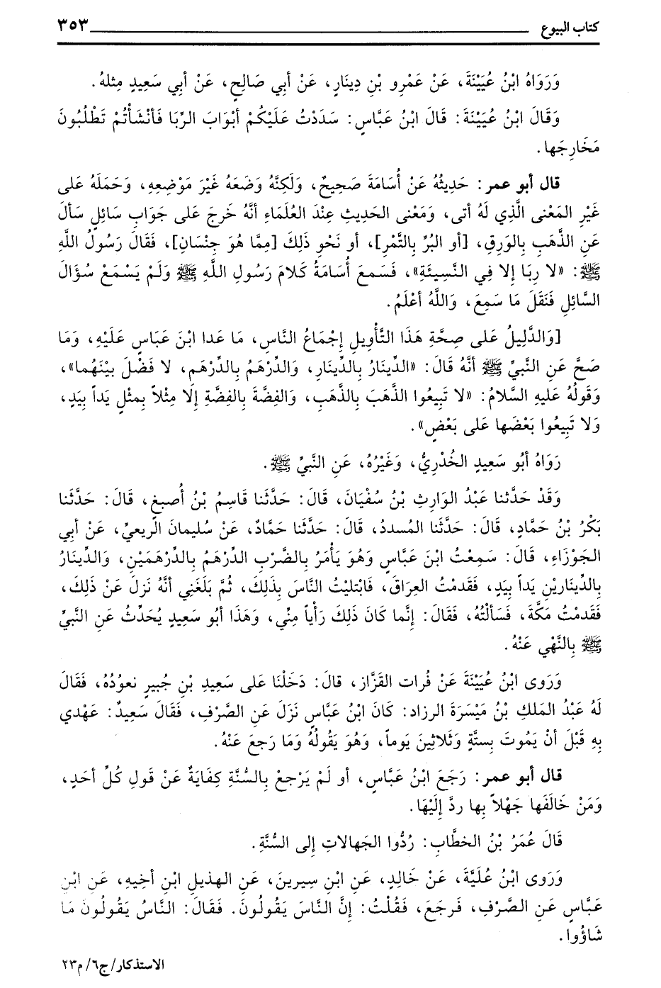 وَأَمَّا قَوْلُهُ فِيهِ بِالدِّينَارَيْنِ وَبِالدِّرْهَمَيْنِ لَفْظٌ مُجْمَلٌ تَفْسِيرُهُ قَوْلُهُ صَلَّى اللَّهُ عَلَيْهِ وَسَلَّمَ ((وَلَا تُشِفُّوا بَعْضَهَا عَلَى بَعْضٍ)) وَقَوْلُهُ عَلَيْهِ الصَّلَاةُ وَالسَّلَامُ ((مِنْ زَادَ فَقَدْ أَرْبَى))
