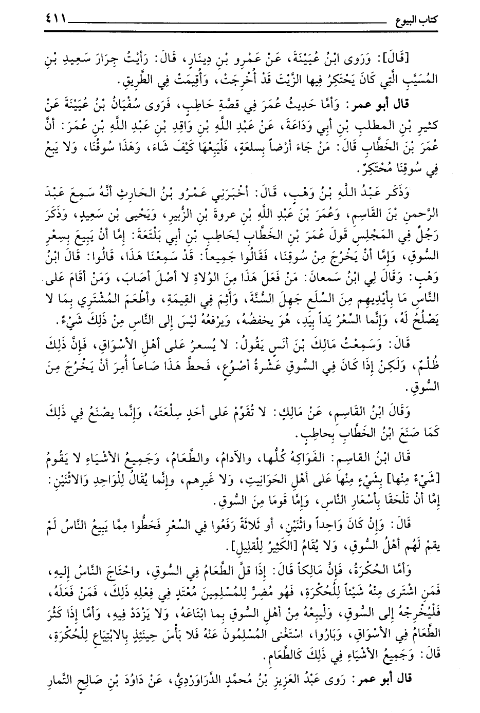 1309 - مَالِكٌ أَنَّهُ بَلَغَهُ أَنَّ عُمَرَ بْنَ الْخَطَّابِ قَالَ لَا حُكْرَةَ فِي سُوقِنَا لَا يَعْمِدُ رِجَالٌ بِأَيْدِيهِمْ فُضُولٌ مِنْ أَذْهَابٍ إِلَى رِزْقٍ مِنْ رِزْقِ اللَّهِ نَزَلَ بِسَاحَتِنَا فَيَحْتَكِرُونَهُ عَلَيْنَا وَلَكِنْ أَيُّمَا جَالِبٍ جَلَبَ عَلَى عَمُودِ كَبِدِهِ فِي الشِّتَاءِ وَالصَّيْفِ