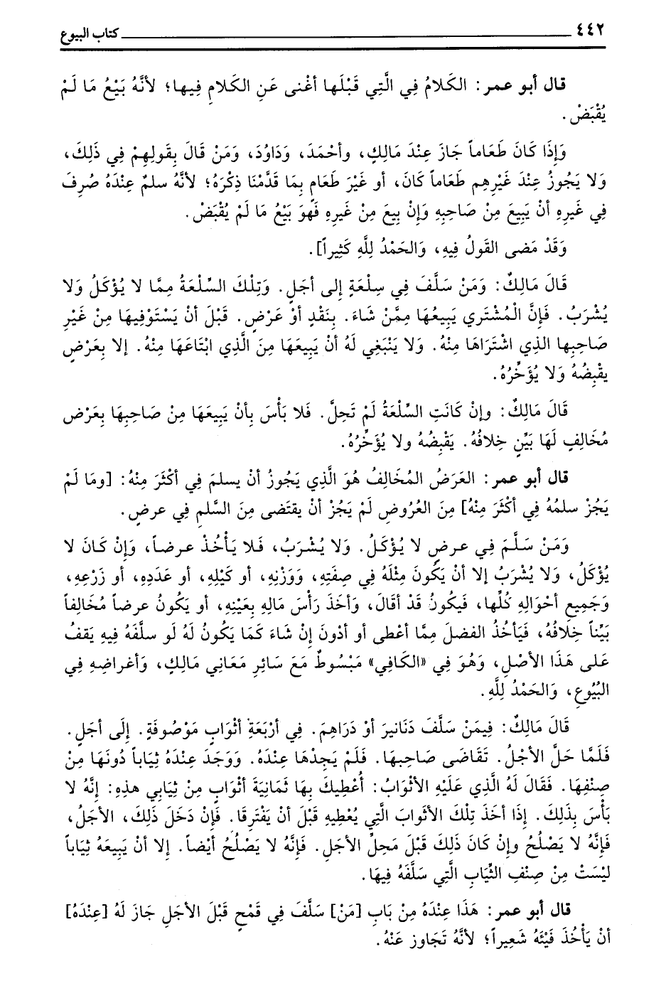 وَهَذَا أَيْضًا مَذْهَبُ أَحْمَدَ بْنِ حَنْبَلٍ وَدَاوُدَ بْنِ عَلِيٍّ لِأَنَّ اللَّهَ تَعَالَى قَدْ أَحَلَّ الْبَيْعَ مُطْلَقًا إِلَّا مَا خَصَّهُ عَلَى لِسَانِ نَبِيِّهِ صَلَّى اللَّهُ عَلَيْهِ وَسَلَّمَ وَذَكَرَهُ فِي كِتَابِهِ