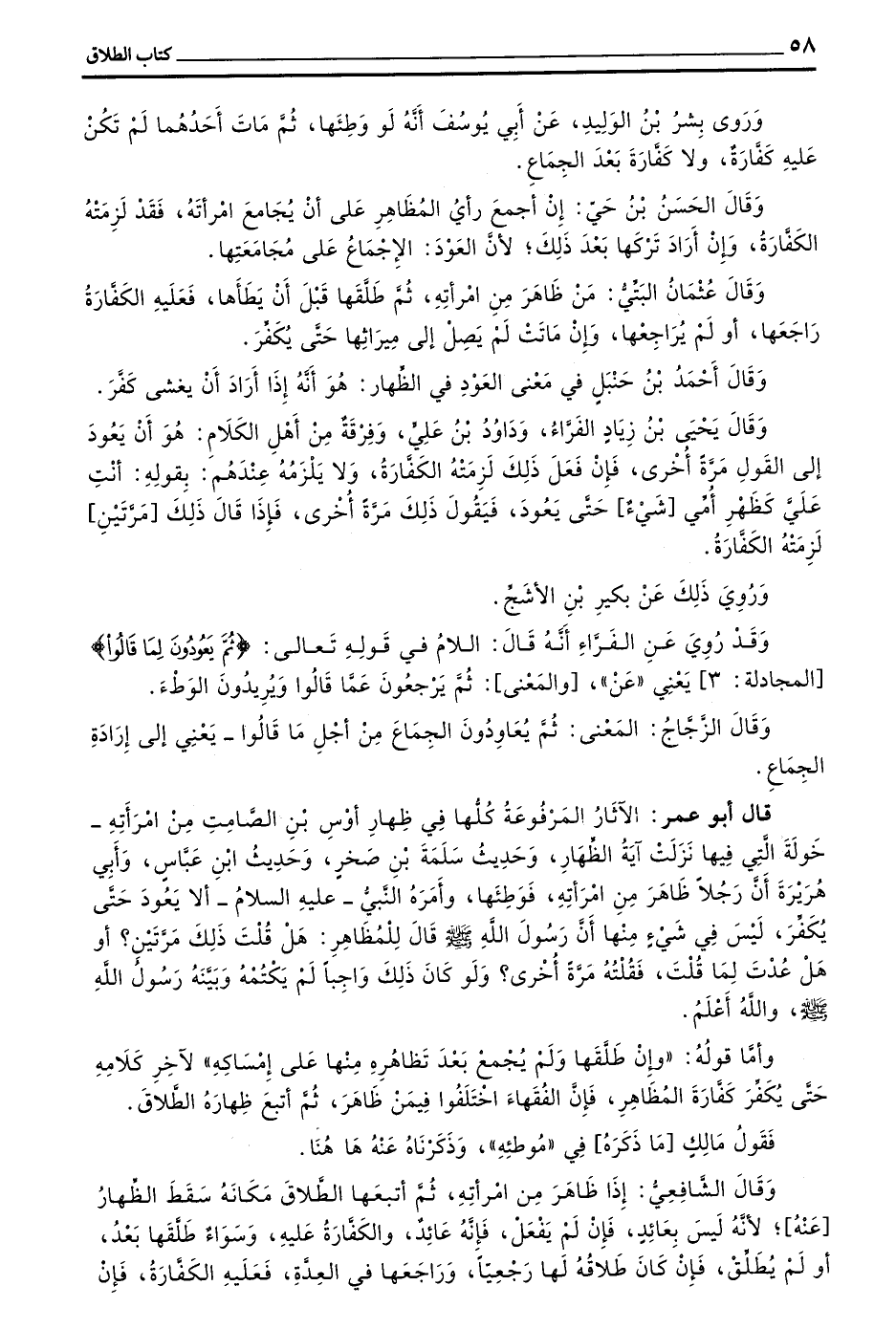 قَالَ مَالِكٌ فِي قَوْلِ اللَّهِ تَبَارَكَ وَتَعَالَى (والذين يظهرون مِنْ نِسَائِهِمْ ثُمَّ يَعُودُونَ لِمَا قَالُوا) الْمُجَادَلَةِ 3 قَالَ سَمِعْتُ أَنَّ تَفْسِيرَ ذَلِكَ أَنْ يَتَظَاهَرَ الرَّجُلُ مِنَ امْرَأَتِهِ ثُمَّ يُجْمِعَ عَلَى إِمْسَاكِهَا وَإِصَابَتِهَا فَإِنْ أَجْمَعَ عَلَى ذَلِكَ فَقَدْ وَجَبَتْ عَلَيْهِ الْكَفَّارَةُ وَإِنْ طَلَّقَهَا وَلَمْ يُجْمِعْ بَعْدَ تَظَاهُرِهِ مِنْهَا عَلَى إِمْسَاكِهَا وَإِصَابَتِهَا فَلَا كَفَّارَةَ عَلَيْهِ قَالَ مَالِكٌ فَإِنْ تَزَوَّجَهَا بَعْدَ ذَلِكَ لَمْ يَمَسَّهَا حَتَّى يُكَفِّرَ كَفَّارَةَ الْمُتَظَاهِرِ