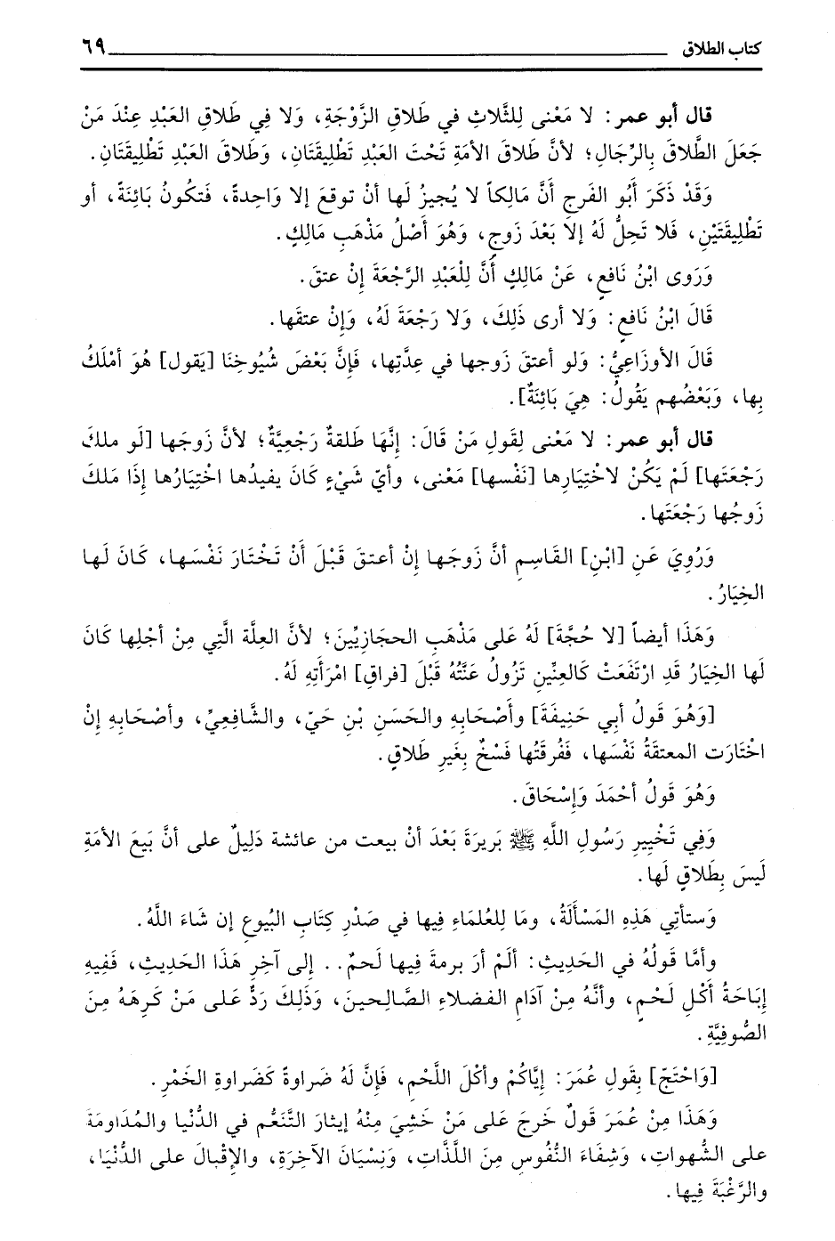 قَالَ أَبُو عُمَرَ أَمَّا احْتِجَاجُهُمْ بِقَوْلِ رَسُولِ اللَّهِ صَلَّى اللَّهُ عَلَيْهِ وَسَلَّمَ لَبَرِيرَةَ ((قَدْ مَلَكْتِ نَفْسَكِ فاختاري)) فإنه خطاب ورد في من كَانَتْ تَحْتَ عَبْدٍ