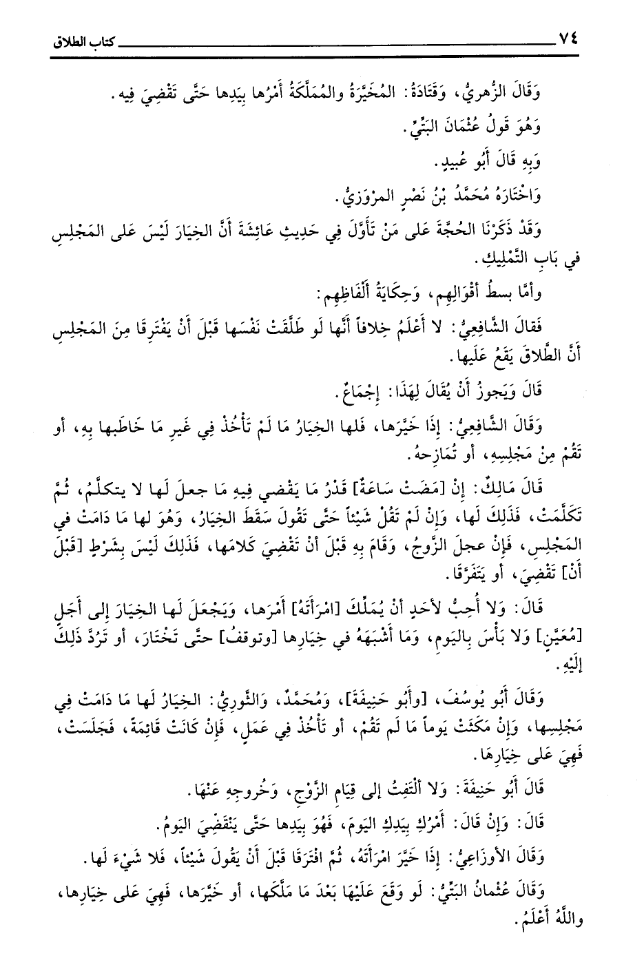 قَالَ أَبُو عُمَرَ عَلَى هَذَا جُمْهُورُ أَهْلِ الْعِلْمِ وَهُوَ الْمَأْثُورُ الصَّحِيحُ عَنِ النَّبِيِّ صَلَّى اللَّهُ عَلَيْهِ وَسَلَّمَ أَنَّهُ خَيَّرَ نِسَاءَهُ فَاخْتَرْنَهُ فَلَمْ يَكُنْ فِي ذَلِكَ طَلَاقٌ وَالْخِلَافُ فِي هَذَا شُذُوذٌ