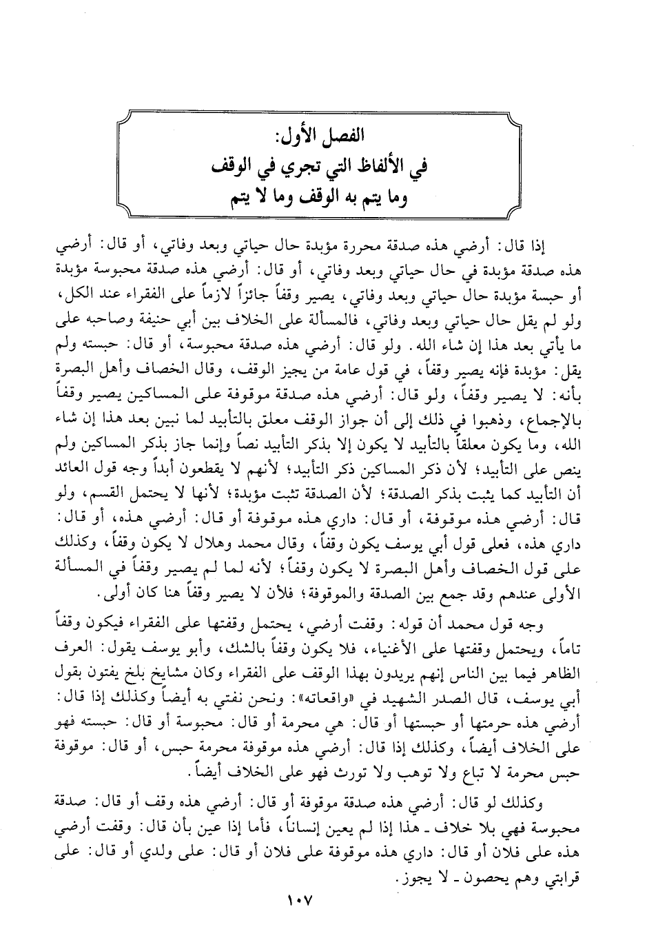 الفصل الأول: في الألفاظ التي تجري في الوقف وما يتم به الوقف وما لا يتم