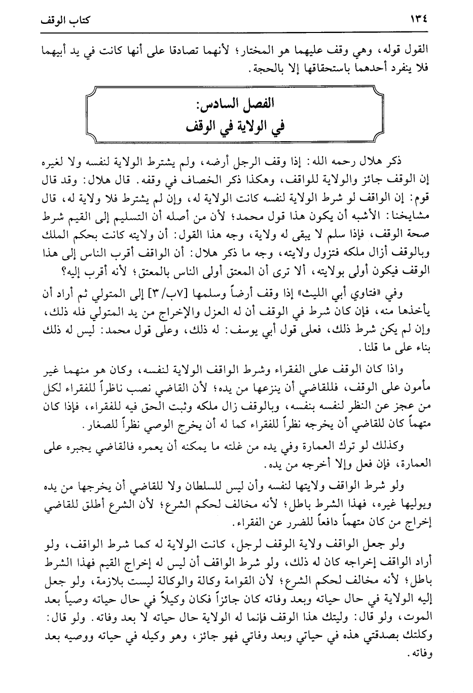 الفصل السادس: في الولاية في الوقف