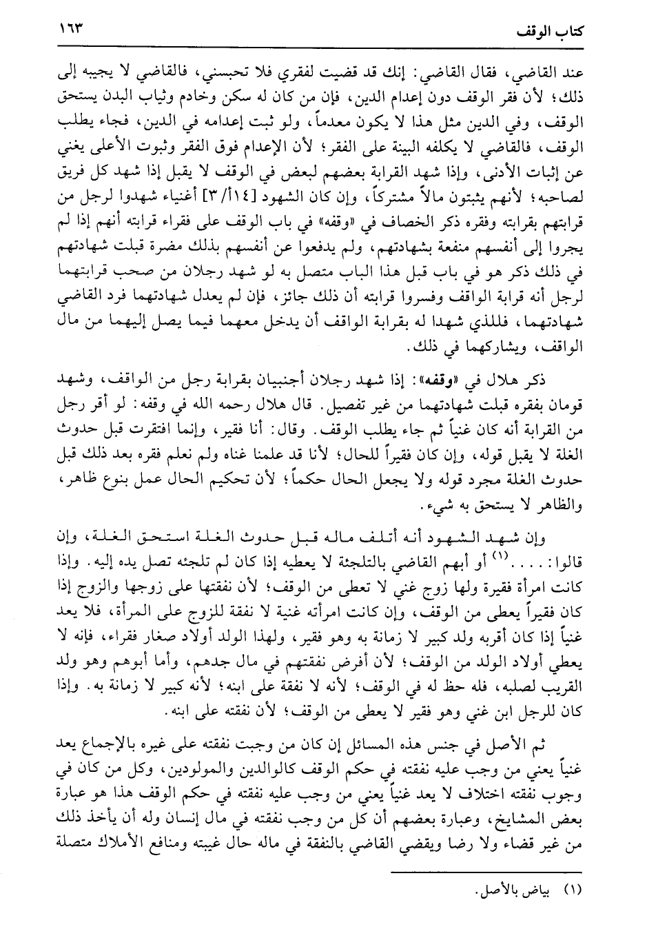 ثم الأصل في جنس هذه المسائل إن كان من وجبت نفقته على غيره بالإجماع يعد غنياً يعني من وجب عليه نفقته في حكم الوقف كالوالدين والمولودين، وكل من كان في وجوب نفقته اختلاف لا يعد غنياً يعني من وجب عليه نفقته في حكم الوقف هذا هو عبارة بعض المشايخ، وعبارة بعضهم أن كل من وجب نفقته في مال إنسان وله أن يأخذ ذلك من غير قضاء ولا رضا ويقضي القاضي بالنفقة في ماله حال غيبته ومنافع الأملاك متصلة