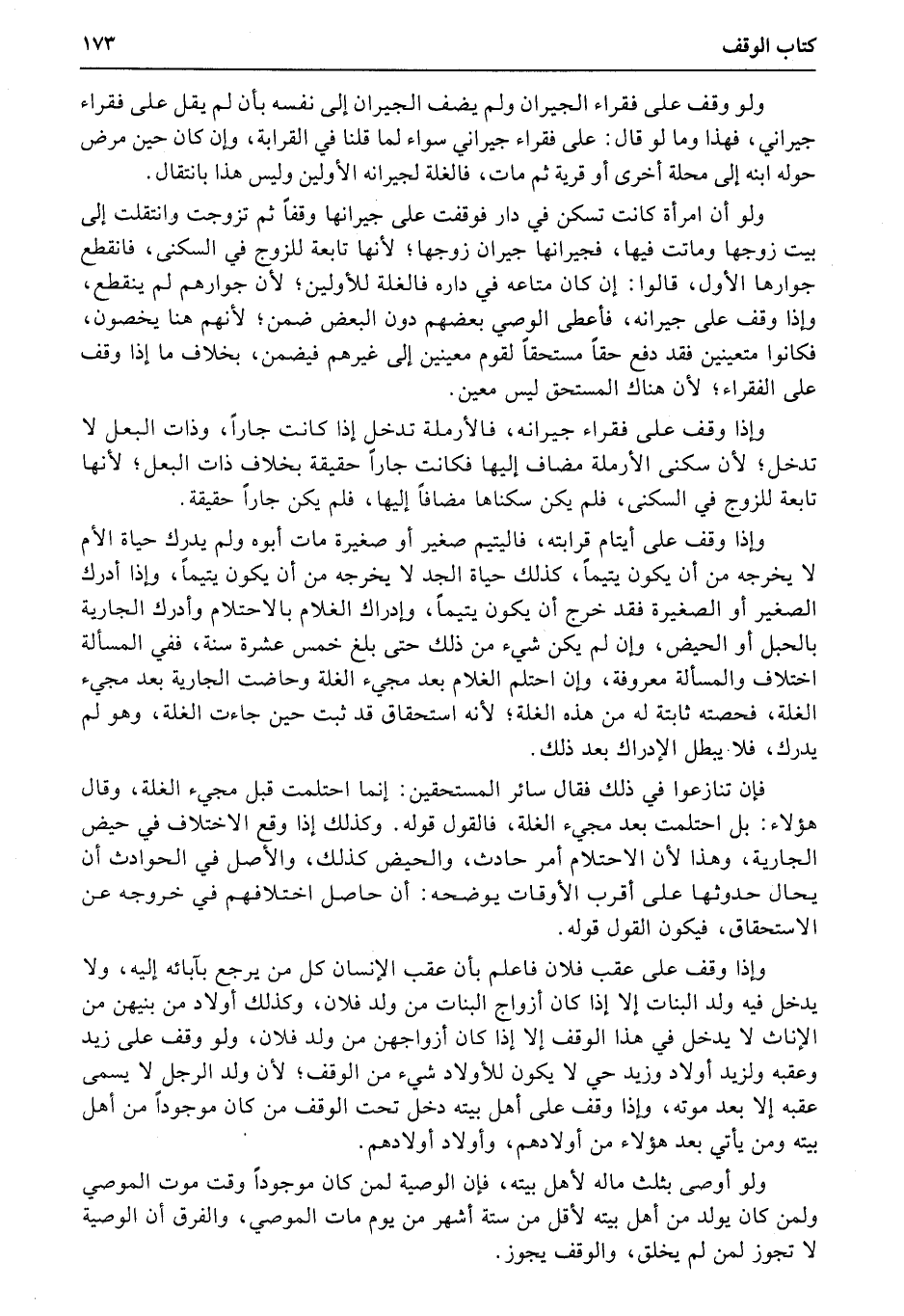 وإذا وقف على عقب فلان فاعلم بأن عقب الإنسان كل من يرجع بآبائه إليه، ولا يدخل فيه ولد البنات إلا إذا كان أزواج البنات من ولد فلان، وكذلك أولاد من بنيهن من الإناث لا يدخل في هذا الوقف إلا إذا كان أزواجهن من ولد فلان، ولو وقف على زيد وعقبه ولزيد أولاد وزيد حي لا يكون للأولاد شيء من الوقف؛ لأن ولد الرجل لا يسمى عقبه إلا بعد موته، وإذا وقف على أهل بيته دخل تحت الوقف من كان موجوداً من أهل بيته ومن يأتي بعد هؤلاء من أولادهم، وأولاد أولادهم.