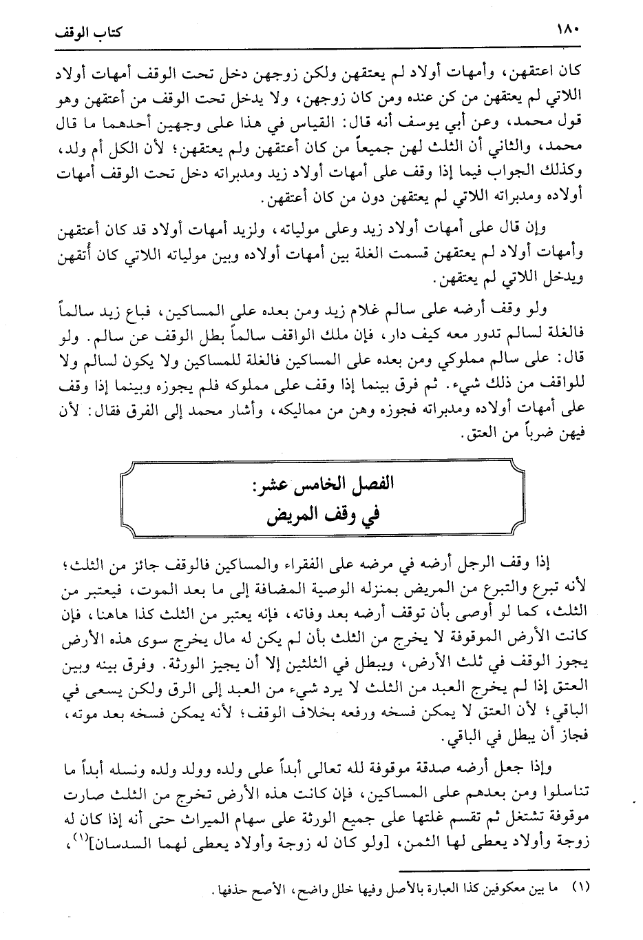الفصل الخامس عشر: في وقف المريض
