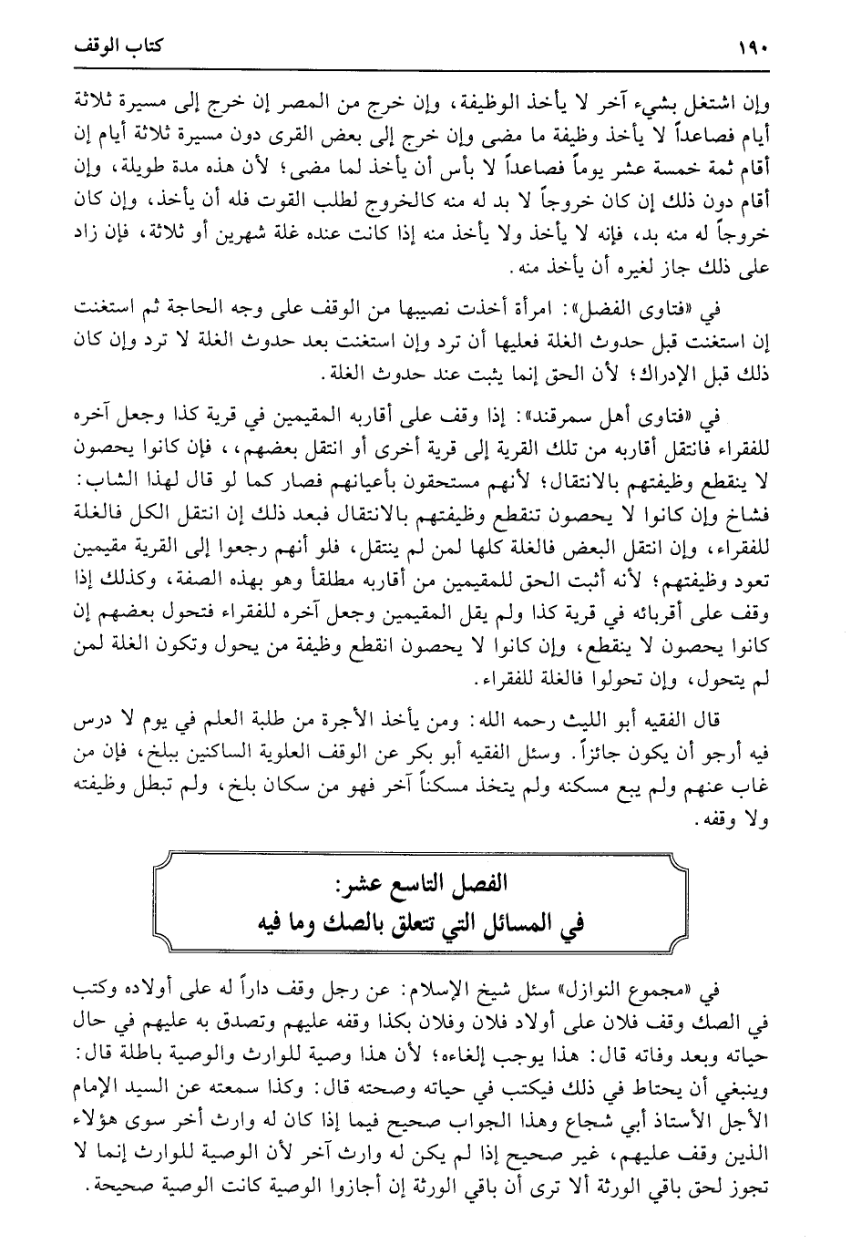 الفصل التاسع عشر: في المسائل التي تتعلق بالصك وما قدره