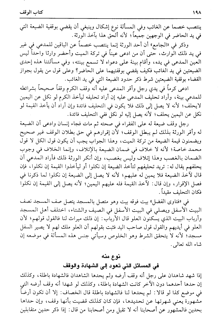 نوع منه فى المسائل التي تعود إلى الشهادة والوقف
