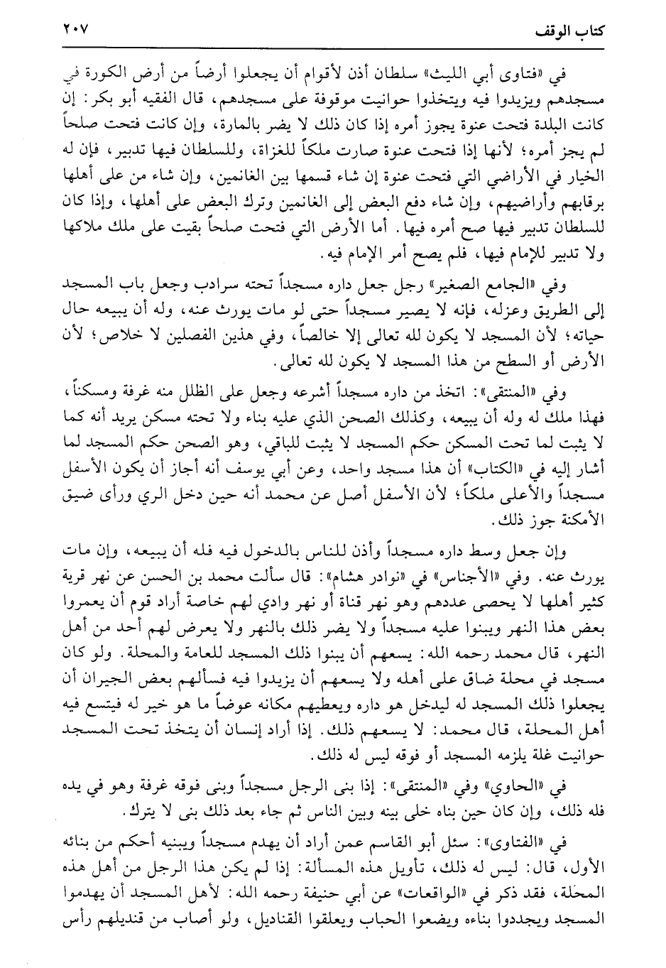 في «فتاوي أبي الليث» سلطان أذن لأقوام أن يجعلوا أرضاً من أرض الكورة في مسجدهم ويزيدوا فيه ويتخذوا حوانيت موقوفة على مسجدهم، قال الفقيه أبو بكر: إن كانت البلدة فتحت عنوة يجوز أمره إذا كان ذلك لا يضر بالمارة، وإن كانت فتحت صلحاً لم يجز أمره؛ لأنها إذا فتحت عنوة صارت ملكاً للغزاة، وللسلطان فيها تدبير، فإن له الخيار في الأراضي التي فتحت عنوة إن شاء قسمها بين الغانمين، وإن شاء من على أهلها برقابهم وأراضيهم، وإن شاء دفع البعض إلى الغانمين وترك البعض على أهلها، وإذا كان للسلطان تدبير فيها صح أمره فيها. أما الأرض التي فتحت صلحاً بقيت على ملك ملاكها ولا تدبير للإمام فيها، فلم يصح أمر الإمام فيه.