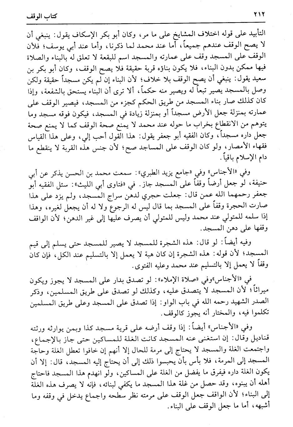 التأبيد على قوله اختلاف المشايخ على ما مر، وكان أبو بكر الإسكاف يقول: ينبغي أن لا يصح الوقف عندهم جميعاً، أما عند محمد لما ذكرنا، وأما عند أبي يوسف؛ فلأن الوقف على المسجد وقف على عمارته والمسجد اسم للبقعة لا تعلق له بالبناء والصلاة فيها ممكن بدون البناء، فلا يكون بناؤه قربة حقيقة فلا يصح الوقف، وكان أبو بكر بن سعيد يقول: ينبغي أن يصح الوقف بلا خلاف؛ لأن البناء إن لم يكن مسجداً حقيقة ولكن وصل بالمسجد يصير تبعاً له ويصير منه حكماً، ألا ترى أن البناء يستحق بالشفعة، وإذا كان كذلك صار بناء المسجد من طريق الحكم كجزء من المسجد، فيصير الوقف على عمارته بمنزلة جعل الأرض مسجداً أو بمنزلة زيادة في المسجد، فيكون فوقه مسجد وما يتوهم من الانقطاع بخراب ما حوله عند محمد لا يمنع صحة الوقف كما لا يمنع صحة جعل داره مسجداً، وكان الفقيه أبو جعفر يقول: هذا القول أحب إلي، وعلى هذا القياس فقهاء الأمصار، ولو كان الوقف على المساجد صح؛ لأن جنس هذه القربة لا ينقطع ما دام الإسلام باقياً.