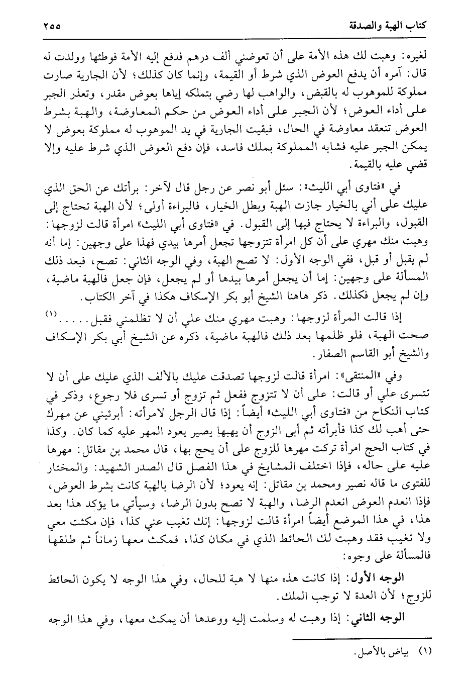 إما أن يجعل أمرها بيدها أو لم يجعل، فإن جعل فالهبة ماضية، وإن لم يجعل فكذلك. ذكر هاهنا الشيخ أبو بكر الإسكاف هكذا في آخر الكتاب.