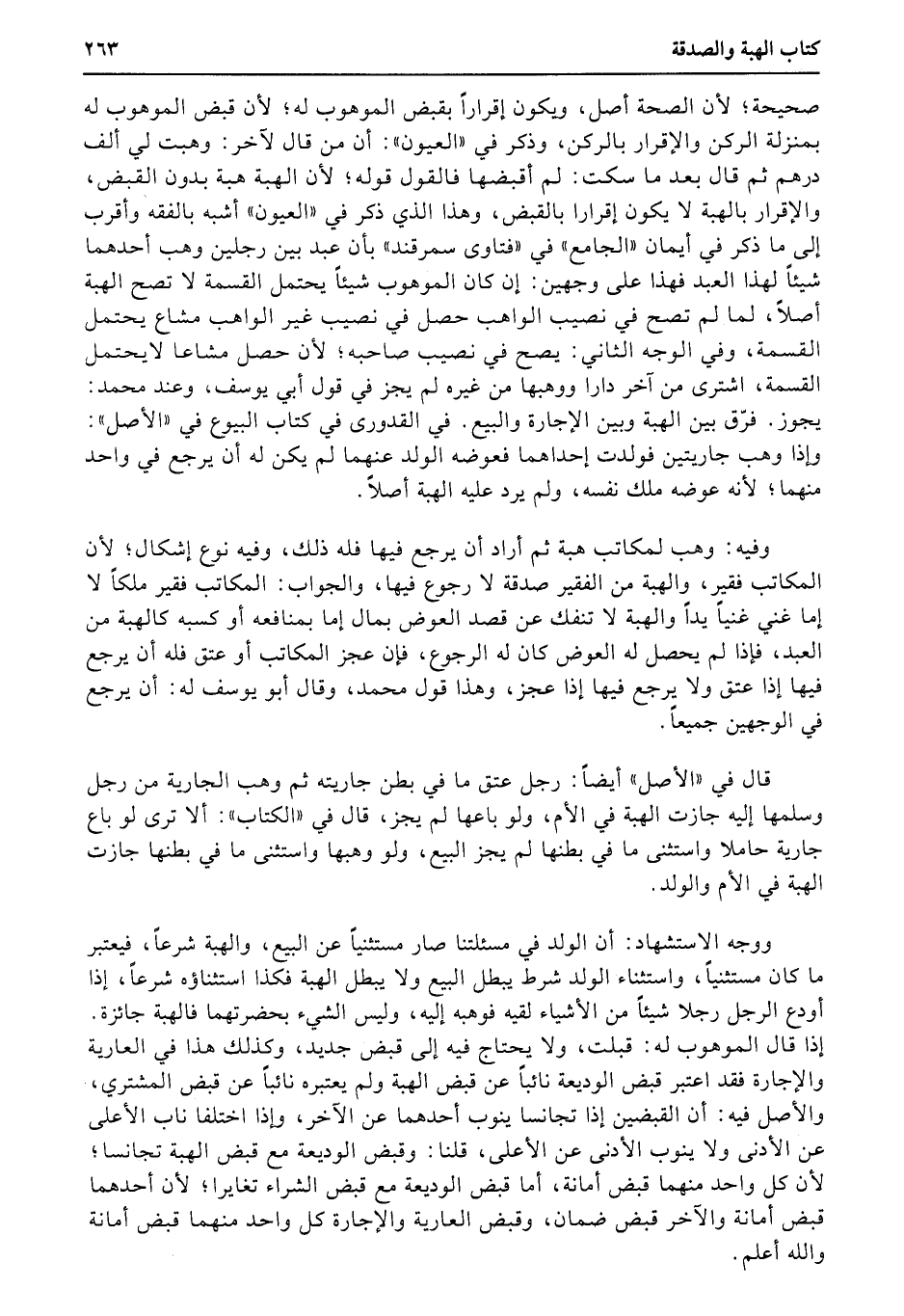 ووجه الاستشهاد: أن الولد في مسئلتنا صار مستثنيا عن البيع، والهبة شرعاً، فيعتبر ما كان مستثنياً، واستثناء الولد شرط يبطل البيع ولا يبطل الهبة فكذا استثناؤه شرعاً، إذا أودع الرجل رجلا شيئاً من الأشياء لقيه فوهبه إليه، وليس الشيء بحضرتهما فالهبة جائزة. إذا قال الموهوب له: قبلت، ولا يحتاج فيه إلى قبض جديد، وكذلك هذا في العارية والإجارة فقد اعتبر قبض الوديعة نائباً عن قبض الهبة ولم يعتبره نائباً عن قبض المشتري، والأصل فيه: أن القبضين إذا تجانسا ينوب أحدهما عن الآخر، وإذا اختلفا ناب الأعلى عن الأدنى ولا ينوب الأدنى عن الأعلى، قلنا: وقبض الوديعة مع قبض الهبة تجانسا؛ لأن كل واحد منهما قبض أمانة، أما قبض الوديعة مع قبض الشراء تغايرا؛ لأن أحدهما قبض أمانة والآخر قبض ضمان، وقبض العارية والإجارة كل واحد منهما قبض أمانة والله أعلم.