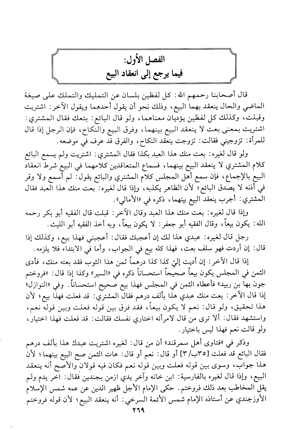 الفصل الأول: فيما يرجع إلى انعقاد البيع