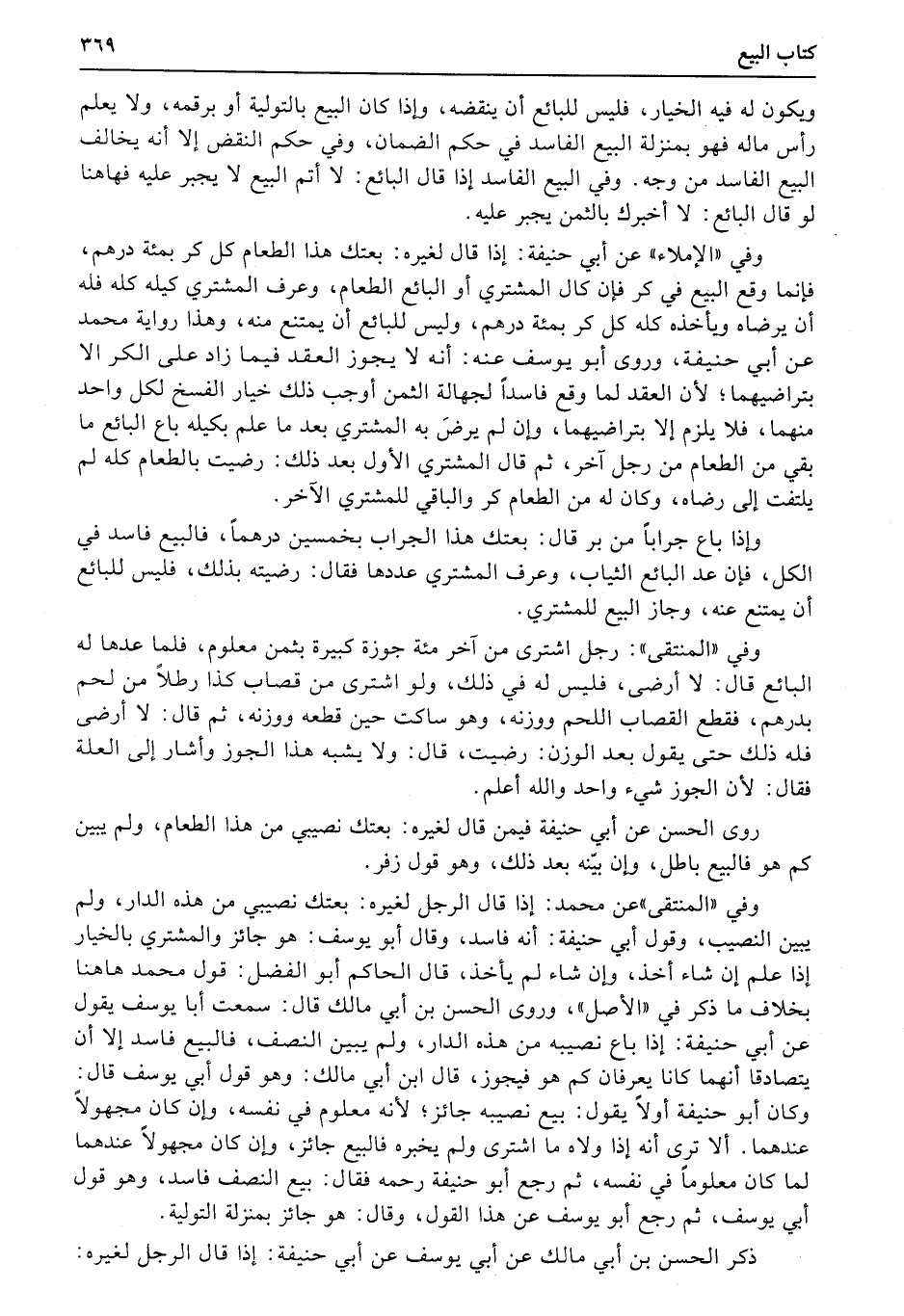 وفي «الإملاء» عن أبي حنيفة: إذا قال لغيره: بعتك هذا الطعام كل كر بمئة درهم، فإنما وقع البيع في كر فإن كال المشتري أو البائع الطعام، وعرف المشتري كيله كله فله أن يرضاه ويأخذه كله كل كر بمئة درهم، وليس للبائع أن يمتنع منه، وهذا رواية محمد عن أبي حنيفة، وروى أبو يوسف عنه: أنه لا يجوز العقد فيما زاد على الكر الا بتراضيهما؛ لأن العقد لما وقع فاسداً لجهالة الثمن أوجب ذلك خيار الفسخ لكل واحد منهما، فلا يلزم إلا بتراضيهما، وإن لم يرضَ به المشتري بعد ما علم بكيله باع البائع ما بقي من الطعام من رجل آخر، ثم قال المشتري الأول بعد ذلك: رضيت بالطعام كله لم يلتفت إلى رضاه، وكان له من الطعام كر والباقي للمشتري الآخر.