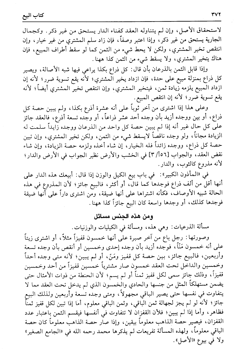 مسألة الذرعيات: وهي هذه، ومسألة في الكيليات والوزنيات.