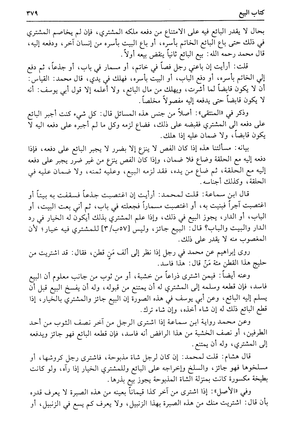 روى إبراهيم عن محمد في رجل إذا نظر إلى ألف مَنٍ قطن، فقال: قد اشتريت من حليج هذا القطن مئة مَنّ قال: هذا فاسد.