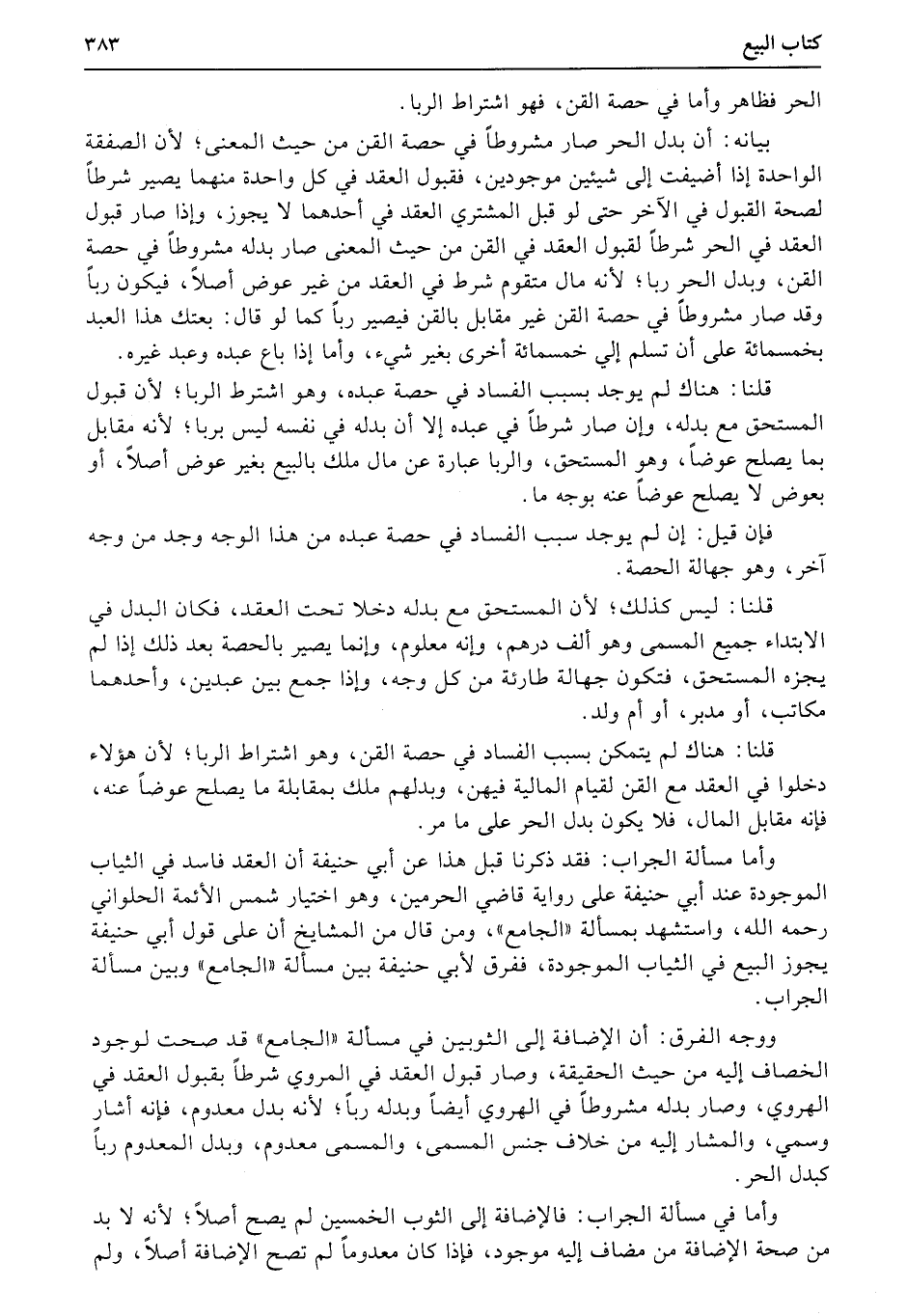 ووجه الفرق: أن الإضافة إلى الثوبين في مسألة «الجامع» قد صحت لوجود الخصاف إليه من حيث الحقيقة، وصار قبول العقد في المروي شرطاً بقبول العقد في الهروي، وصار بدله مشروطاً في الهروي أيضاً وبدله رباً؛ لأنه بدل معدوم، فإنه أشار وسمي، والمشار إليه من خلاف جنس المسمى، والمسمى معدوم، وبدل المعدوم رباً كبدل الحر.