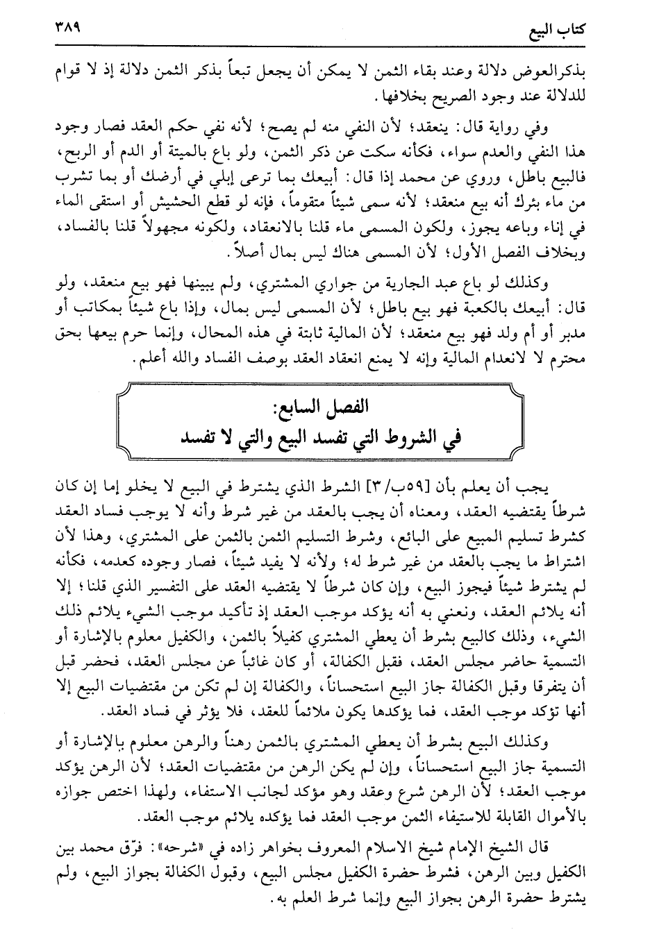 الفصل السابع: في الشروط التي تفسد البيع والتي لا تفسد