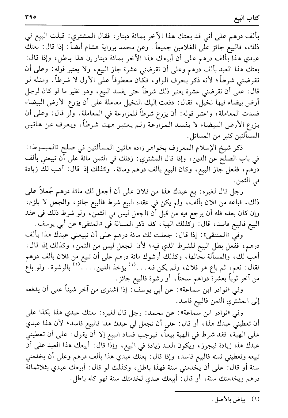 وعن محمد برواية هشام أيضاً: إذا قال: بعتك عبدي هذا بألف درهم على أن أبيعك هذا الآخر بمائة دينار إن هذا باطل، وإذا قال: بعتك هذا العبد بألف درهم وعلى أن تقرضني عشرة جاز البيع، ولا يعتبر قوله: وعلى أن تقرضني شرطاً؛ لأنه ذكر بحرف الواو، فكان معطوفاً على الأول لا شرطاً.