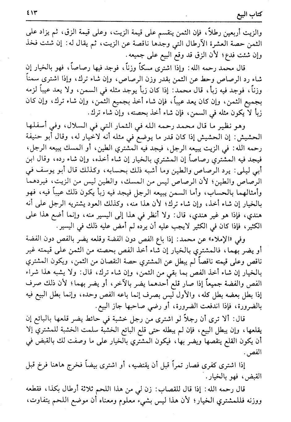 وهو نظير ما قال محمد رحمه الله في الثمار التي في السلال، وفي أسفلها الحشيش: إن الحشيش إذا كان قدر ما يوضع في مثله أنه لاخيار له، وقال أبو حنيفة رحمه الله: في الزيت يبيعه الرجل، فيجد فيه المشتري الطين، أو المسك يبيعه الرجل، فيجد فيه المشتري رصاصاً إن المشتري بالخيار إن شاء أخذه، وإن شاء رده، وقال ابن أبي ليلى: يرد الرصاص والطين وما أشبه ذلك بحسابه، وكذلك قال أبو يوسف في الرصاص والطين؛ لأن الرصاص ليس من المسك، والطين ليس من الزيت، فيردهما وأمثالهما بالحساب، وأما السمن يبيعه الرجل فيجد فيه زبأ يكون ذلك عيباً فيه، فهو بالخيار إن شاء أخذ، وإن شاء ترك؛ لأن هذا منه، وكذلك العود يشتريه الرجل على أنه هندي، فإذا هو غير هندي، قال: ولا أنظر في هذا إلى اليسير منه، وإنما أضع هذا على الكثير، فإذا كان في الكثير لايجب عليه أن يرده لم أمض عليه ذلك في اليسير.