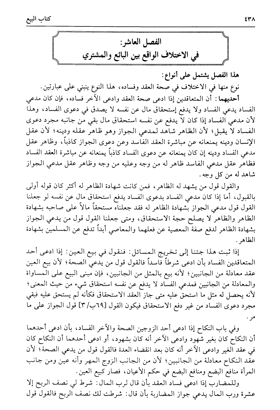الفصل العاشر: في الاختلاف الواقع بين البائع والمشتري