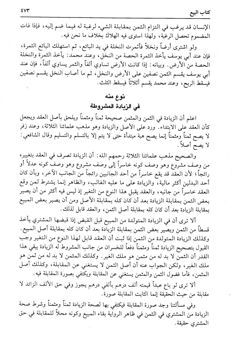 وكذلك الزيادة المتولدة من الثمن إذا ثبت أن العقد قابل لهذا النوع من التغير وجب القبول بتصحيح الزيادة ثمناً ومثمناً دفعاً للخسران من جانب المشروط له الزيادة يبقي هذا القدر أن الثمن لا بد له من مثمن هو ملك الغير.
